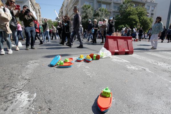 Μάλιστα, στο ύψος της Ηρώδου Αττικού οι απεργοί άφησαν στον δρόμο πούρα και καραβάκια καυτηριάζοντας τις «σκαφάτες» διακοπές του Αλέξη Τσίπρα.