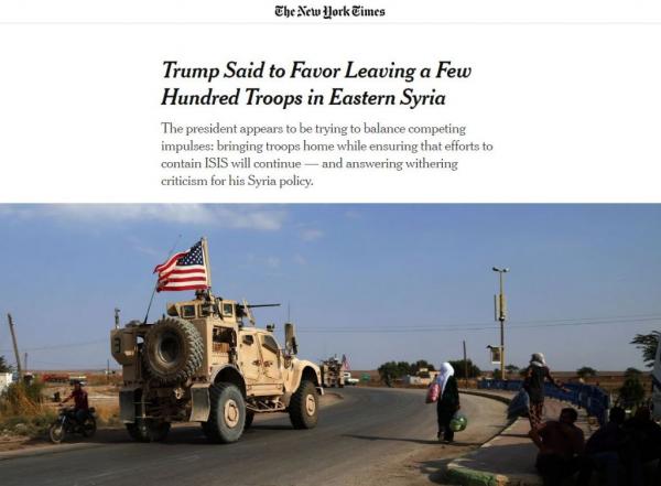 Σύμφωνα με το δημοσίευμα, εάν ο Τραμπ αποφασίσει να αφήσει αρκετές εκατοντάδες στρατιωτικούς στην ανατολική Συρία, θα ήταν η δεύτερη φορά από την αρχή του έτους που ακυρώνει τη δική του εντολή να αποσύρει όλα τα αμερικανικά στρατεύματα από την περιοχή.