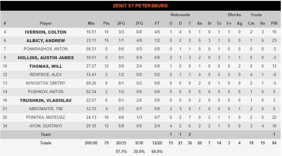 Ο Ντεσόν Τόμας κέρδισε κατά κράτος τον Ουίλ Τόμας, με τους δυο τους να μονοπωλούν το σκοράρισμα. Από το 14-10 το σκορ πήγε στο 18-20 με τον Τόμας του Παναθηναϊκού να πετυχαίνει και τους 10 πόντους της ομάδας του και τον συνεπώνυμό του τους 4 της Ζενίτ.