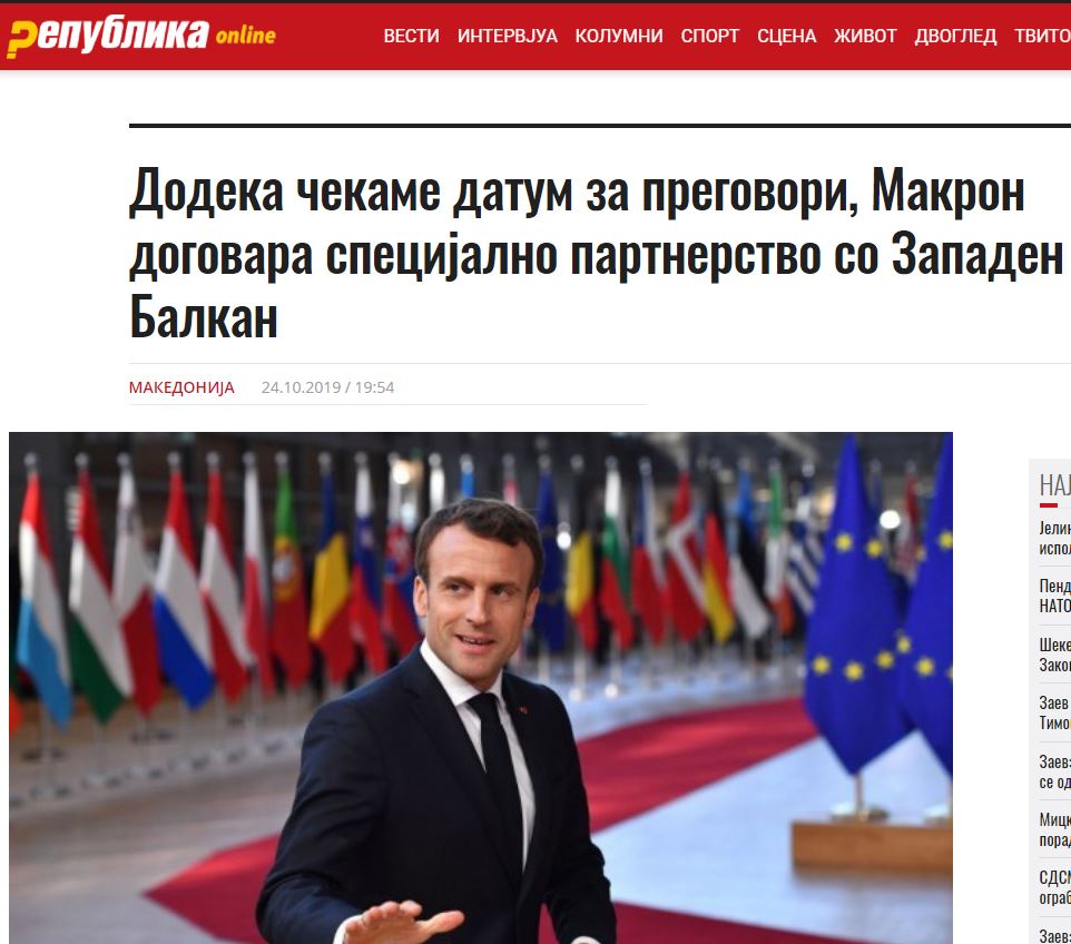 Σύμφωνα με σέρβικα ΜΜΕ, τα οποία επικαλείται η ιστοσελίδα της γειτονικής χώρας republika.mk, η πρόταση του γάλλου προέδρου προβλέπει αντί για την πλήρη ένταξη της Βόρειας Μακεδονίας και της Αλβανίας στην Ένωση ένα είδος εταιρικής σχέσης.