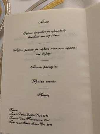Στο επίσημο δείπνο που παρέθεσε ο Πρόεδρος της Δημοκρατιας Προκόπης Παυλοπουλος προς τιμή του Προέδρου της Σερβίας Aleksandar Vucic παρέστη ο Πρωθυπουργός Κυριάκος Μητσοτάκης, ο οποίος είχε και μακριά συνομιλία με τον Σέρβο Πρόεδρο. Τον Πρόεδρο του ΣΥΡΙΖΑ Αλέξη Τσίπρα εκπροσώπησε ο Δημήτρης Βίτσας, ενώ ήταν παροντες και οι υπουργοί Παιδείας Νίκη Κεραμέως και Αμύνης Νίκος Παναγιωτοπουλος. Το μενού περιελάμβανε: πρώτο πιάτο, φιλέτο σφυρίδας με ελαιόλαδο, βασιλικό και ντοματίνια. Κυρίως πιάτο: φιλέτο Μοσχου με σάλτσα κόκκινου κρασιού και θυμαρι, εν συνεχεία προσφέρθηκε mousse μανταρίνι, φρούτα εποχής και καφές.