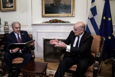 Με τον στρατάρχη Χαφτάρ συναντήθηκε σήμερα, Παρασκευή υπουργός Εξωτερικών, Νίκος Δένδιας. Η συνάντηση διήρκησε 90 λεπτά.