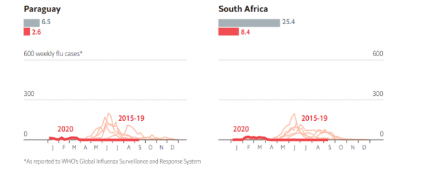 Η αιτία αυτής της ραγδαίας μείωσης των λοιμώξεων είναι προφανείς. Οι κυβερνήσεις σε όλο τον κόσμο επέβαλαν επώδυνα lockdown για να νικήσουν τον νέο κορωνοϊό. Με αυτό τον τρόπο, οι χώρες του νοτίου ημισφαιρίου δεν κατάφεραν απλώς να επιβραδύνουν τη δική του εξάπλωση, αλλά και εκείνη μιας άλλης φονικής ασθένειας: της γρίπης.