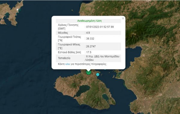 Σύμφωνα με το Ευρωπαϊκό – Μεσογειακό Σεισμολογικό Κέντρο (EMSC), ο σεισμός ήταν μεγέθους 5 βαθμών της κλίμακας Ρίχτερ και το επίκεντρό του εντοπίστηκε σε απόσταση 130 χιλιομέτρων βορειοδυτικά της Σμύρνης ή 14 χιλιομέτρων βόρεια της Αγίας Παρασκευής, στη Λέσβο.