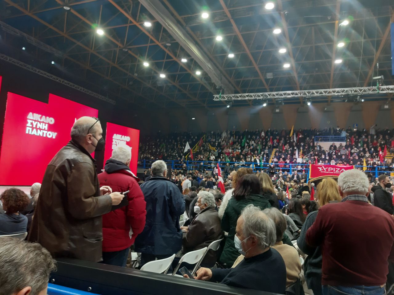Από το Δημοτικό Γυμναστήριο «Ανδρέας Παπανδρέου» στο Περιστέρι ξεκινά τις ομιλίες του ενόψει εκλογών ο πρόεδρος του ΣΥΡΙΖΑ, Αλέξης Τσίπρας, με σύνθημα «η Δημοκρατία αντεπιτίθεται».