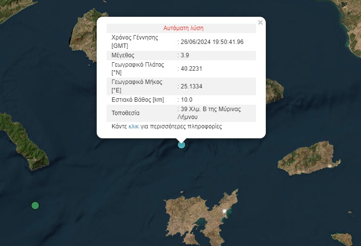Σεισμός μεγέθους 3,9 βαθμών της κλίμακας Ρίχτερ σημειώθηκε ανοιχτά της Λήμνου.