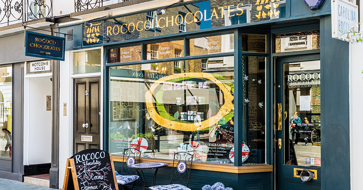 Ενας ακόμα παράδεισος για τους φίλους της σοκολάτας, ένας ακόμα χώρος γεμάτος γαργαλιστικές μυρωδιές και γαστριμαργικούς πειρασμούς. Ή μάλλον πολλοί χώροι, καθώς καταστήματα Rococo υπάρχουν σε πέντε γειτονιές του Λονδίνου: Στο Τσέλσι, στο Κόβεντ Γκάρντεν, στην Μπελγκρέιβια, στο Μέριλμπον, και στο Σεντ Τζονς Γουντ. Εδώ δεν θα καθίσετε για να απολαύσετε τη σοκολάτα σας, αλλά θα την αγοράσετε και θα συνεχίσετε τον περίπατό σας. Θα σας στοιχίσει 4,95 στερλίνες. Μπορείτε και να αγοράσετε σοκολάτα σε σκόνη για να φτιάξετε το δικό σας ρόφημα τις ώρες που, πίσω στο σπίτι, θα νοσταλγείτε το Λονδίνο. Θα βρείτε, μεταξύ άλλων, ποικιλίες με τσάι, με πορτοκάλι, με κάρδαμο και με μπανάνα. Για όποιον προτιμήσει τα σοκολατάκια, το (τεράστιο) κουτί με τα 100 κομμάτια (σε διάφορες γεύσεις) κοστίζει 165 στερλίνες. Υπάρχουν, εννοείται, και πιο οικονομικές επιλογές (σε πιο μικρά κουτιά).