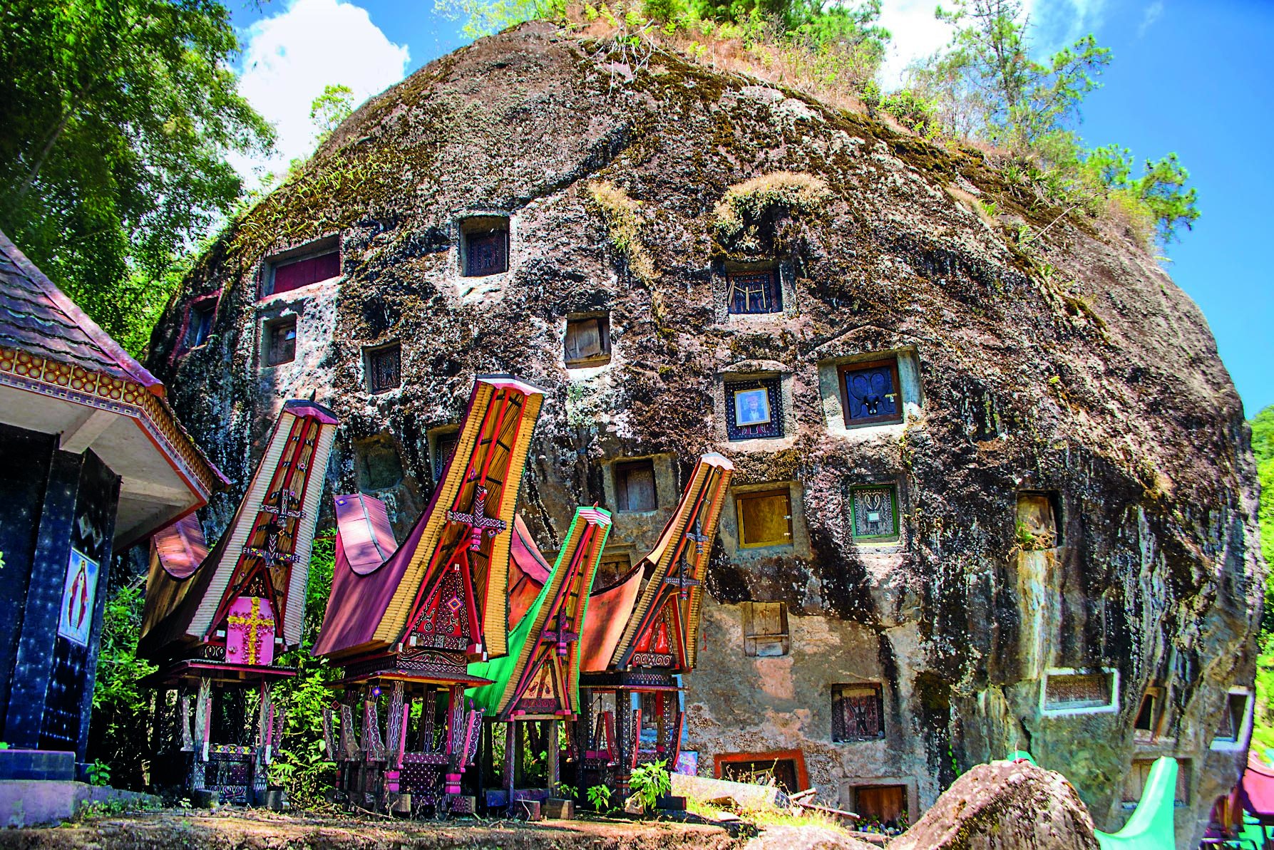 Οικογενειακοί τάφοι λαξεμένοι σε βράχο στη νήσο Σουλαουέζι./ Φωτ.: Shutterstock