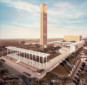 Ετσι θα μοιάζει το υπερσύγχρονο τζαμί που αρχιτέκτονες και κατασκευαστές από τη Γερμανία θα ανεγείρουν στην πόλη του Αλγερίου. Πρόκειται για ηλεκτρονική απεικόνιση, μια ψηφιακή «μακέτα» με τη χρήση υπολογιστή. Το συμβόλαιο υπεγράφη χθες από την επισκεπτόμενη επισήμως την Αλγερία γερμανίδα καγκελάριο Ανγκελα Μέρκελ και τον αλγερινό πρόεδρο Αμπντελαζίζ Μπουτεφλίκα. Το τέμενος θα χωρά συνολικά 40.000 πιστούς και θα χρηματοδοτηθεί από τη Γερμανία με 890 εκατομμύρια ευρώ. Το έργο αναμένεται να ολοκληρωθεί ως το 2012.