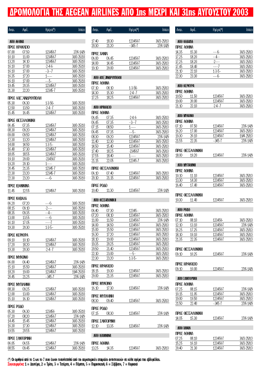 ΑΕΡΟΠΟΡΙΚΑ ΔΡΟΜΟΛΟΓΙΑ AEGEAN AIRLINES-ΟΛΥΜΠΙΑΚΗ ΑΕΡΟΠΟΡΙΑ