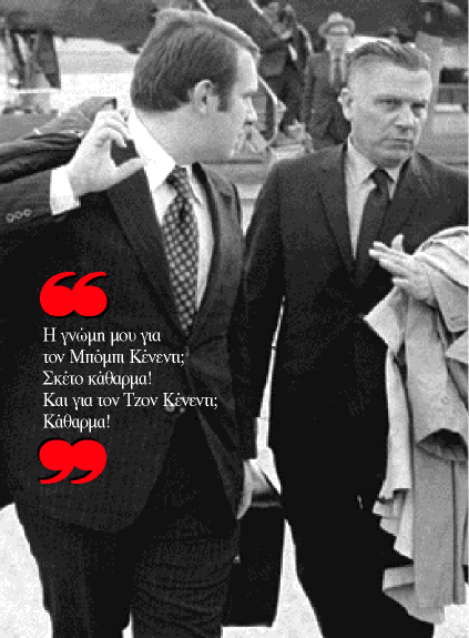 Ο ΡΟΜΠΕΡΝΤ ΚΕΝΕΝΤΙ ΚΑΤΑΦΕΡΕ να «στριμώξει» τον άσπονδο εχθρό του. Κατηγορίες για πλείστα οικονομικά σκάνδαλα αλλά και για τη δωροδοκία ενόρκων ομοσπονδιακού δικαστηρίου εκκρεμούσαν εις βάρος του προέδρου των Teamsters. Στη φωτογραφία, ο Τζέιμς Ριντλ (= Αίνιγμα) Χόφα αντικρίζει τον φακό μέσα από τα σίδερα των φυλακών της επαρχίας Χάμιλτον (9 Μαΐου 1967)