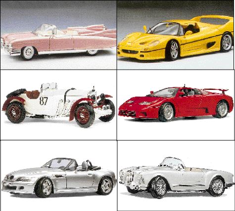Ο «μικρόκοσμος» των αυτοκινήτων μπορεί να φτιαχθεί έτσι ώστε να ταιριάζει στις προτιμήσεις ακόμη και του πλέον απαιτητικού συλλέκτη. Τα σχετικά ειδικευμένα καταστήματα διαθέτουν ως και μινιατούρες αυτοκινήτων με «ιστορική» σημασία, όπως το φορτηγάκι Ford F1 (1948) που οδηγούσε ο πρωταγωνιστής της ταινίας «Λάσι», η ροζ Cadillac Eldorado Biarritz (1959) του Ελβις Πρίσλεϊ και η Lotus 49 Quarzo (1967) με την οποία ο Γκράχαμ Χιλ έτρεξε στο Γκραν Πρι της Ολλανδίας. Οσον αφορά τις φόρμουλες, μπορεί να συλλέξει κανείς όχι μόνο σημαντικά μοντέλα αλλά και διάφορα αξεσουάρ, π.χ. το κράνος των οδηγών.