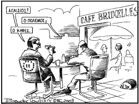 «Με τον τρόπο αυτόν θα περιορίσουμε στο ελάχιστο τις αντιδράσεις της αραβικής κοινής γνώμης» σημείωσε χαρακτηριστικά ο κ. Πάουελ, αλλά ήταν προφανές ότι την… αισιοδοξία του δεν τη συμμερίστηκε η συντριπτική πλειονότητα των υπόλοιπων υπουργών Εξωτερικών. Γενικότερα άλλωστε, η αποτίμηση των επαφών και των συζητήσεων που είχε ο αμερικανός υπουργός Εξωτερικών στις Βρυξέλλες δεν δημιούργησε σε κανέναν – και κυρίως στην ελληνική προεδρία – ελπίδες για ταχεία γεφύρωση του χάσματος στις σχέσεις ΕΕ – ΗΠΑ. Η Αθήνα, από την πλευρά της, αντιλαμβανόμενη τον κίνδυνο να εκδηλωθούν εκ νέου διαφοροποιήσεις στους κόλπους της Ευρωπαϊκής Ενωσης, με επίκεντρο το περιεχόμενο που δίνεται στον «κεντρικό ρόλο» του ΟΗΕ – έτσι όπως αυτός προσδιορίζεται από την «κοινή θέση» της 20ής Μαρτίου -, ξεκινάει νέο κύκλο διαβουλεύσεων με τους ευρωπαίους εταίρους με αυτό το αντικείμενο. «Ως τώρα όλοι μιλούσαμε για τον ουσιαστικό ρόλο του ΟΗΕ, αλλά τώρα ήρθε η στιγμή να ξεκαθαρίσουμε επακριβώς τι εννοούμε, καθιστώντας τη θέση μας περισσότερο “πολιτική” και λιγότερο διακηρυκτική» είναι η άποψη που υποστηρίζει ο υπουργός Εξωτερικών κ. Παπανδρέου…