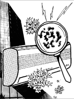 «Τα κλιματιστικά μετατρέπονται σε τόπο συσσώρευσης παθογόνων μικροοργανισμών από την αναπνοή και τον ιδρώτα των ανθρώπων. Τα βακτηρίδια αυτά επαναπροωθούνται με το ίδιο σύστημα κλιματισμού στον αέρα των χωρών διαβίωσης ή εργασίας. Ο κίνδυνος προσβολής των ατόμων, με προβληματικό κυρίως ανοσοποιητικό σύστημα, είναι μεγάλος. Τα πλέον επικίνδυνα για την επώαση τέτοιου είδους μικροβίων είναι τα γυάλινα κτίρια, όπου δεν υπάρχει ο κατάλληλος εξαερισμός και τα πάντα εξαρτώνται από το σύστημα κλιματισμού» αναφέρει ο χημικός μηχανικός και περιβαλλοντολόγος κ. Δ. Παπαϊωάννου.