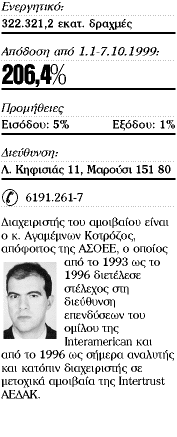 «Ο λόγος που ένας επενδυτής θα προτιμούσε να τοποθετηθεί στο αμοιβαίο είναι ότι η Intertrust ΑΕΔΑΚ είναι η πρώτη ιδιωτική ΑΕΔΑΚ που δραστηριοποιήθηκε στον χώρο των αμοιβαίων κεφαλαίων το 1988 και διαθέτει αμοιβαία από το 1989. Εχει αποκτήσει σημαντική τεχνογνωσία, μέσα σε μία δεκαετία και πλέον, ενώ στόχος της καθημερινά είναι να προπορεύεται των αναγκών των πελατών της. Το αποτέλεσμα της δεκαετούς προσπάθειας επιβεβαιώνεται: πρώτον, από τις αποδόσεις των αμοιβαίων της, τα μετοχικά Α/Κ έχουν σημειώσει σημαντικές αποδόσεις τόσο σε σχέση με τον ανταγωνισμό όσο και με τον γενικό δείκτη· δεύτερον, από το μέγεθος των ενεργητικών των μετοχικών κυρίως αμοιβαίων που έχουν προσεγγίσει τα 800 δισ. δρχ. · και τρίτον, από την ευρύτατη γκάμα των αμοιβαίων που βρίσκονται στη διάθεση του επενδυτικού κοινού, ικανοποιώντας το σημαντικότερο μέρος των επενδυτικών αναγκών του».
