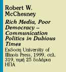Περνούν κρίση τα μέσα ενημέρωσης στην Αμερική και στον κόσμο; Και μήπως περνούν κρίση και η ίδια η δημοκρατία και ο δημοκρατικός διάλογος; Αυτά είναι δύο από τα βασικά ερωτήματα που θέτει ο συγγραφέας, ο οποίος διερευνά την ιστορία και την εξέλιξη των αμερικανικών μέσων μαζικής ενημέρωσης (ΜΜΕ) τα τελευταία ογδόντα χρόνια. Οποιος αναρωτιέται γιατί το ραδιόφωνο και η τηλεόραση είναι τόσο ανούσια και, ενίοτε, αηδιαστικά, θα βρει τις απαντήσεις του στο βιβλίο του Μακ Τσέσνι ­ ο οποίος είναι συχνός επισκέπτης των ραδιοθαλάμων του National Public Radio (Εθνικό Κρατικό Ραδιόφωνο). Αλλά και o Τύπος δεν απέχει πολύ από την κατάσταση στην οποία βρίσκονται τα ραδιοτηλεοπτικά ΜΜΕ σ’ αυτή την ομοβροντία αναμασήματος ειδήσεων και στον χυλό των προγραμμάτων και των σελίδων χωρίς περιεχόμενο. Ο Μακ Τσέσνι καταπιάνεται με τα μονοπώλια των ΜΜΕ ­ με τις μεγάλες εξαγορές των μεγάλων ΜΜΕ και την έκρηξη των συγχωνεύσεων των μεγάλων τηλεοπτικών εταιρειών ­ και ισχυρίζεται ότι τα ΜΜΕ, εκτός του ότι είναι το θεμέλιο της ελευθερίας και της δημοκρατίας, στην Αμερική, αλλά και σε πολλές άλλες χώρες του κόσμου, έχουν εξελιχθεί σε έναν πολύ αντιδημοκρατικό θεσμό. Φυσικά ο Ρόμπερτ Μακ Τσέσνι αναφέρεται στις εταιρείες-μεγαθήρια (CBS, ABC, CNN, NBC, ESPN, MTV, Walt Disney, Warner Brothers, Nipon Television, Times Warner, New York Times Company, Times-Mirror, Time κ.ά.) και όχι στις μικρές τοπικές και επαρχιακές εφημερίδες, στα τηλεοπτικά κανάλια και στους ραδιοφωνικούς σταθμούς, σε όσα κανάλια και όσους σταθμούς δεν έχουν εξαγοραστεί ακόμη από τις μεγάλες εταιρείες των ΜΜΕ.