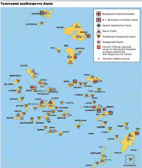 Ειδικότερα είχε εξεταστεί η λειτουργία των 29 πολυδύναμων περιφερειακών ιατρείων των αιγαιοπελαγίτικων νησιών και είχε αποκαλυφθεί ότι συνολικά υπηρετούν μόνο τρεις γιατροί ειδικότητας και ένας-δύο αγροτικοί γιατροί σε καθένα από αυτά, ενώ σε 20 ιατρεία δεν υπάρχουν καν νοσηλευτές. Επίσης είχε αποκαλυφθεί η έλλειψη βασικών μηχανημάτων και εργαλείων: από θερμόμετρα και ακουστικά ως ακτινολογικά μηχανήματα και εξεταστικό κρεβάτι. Το δε ιατρείο του Κουφονησίου δεν διέθετε κλίβανο αποστείρωσης των ιατρικών εργαλείων.