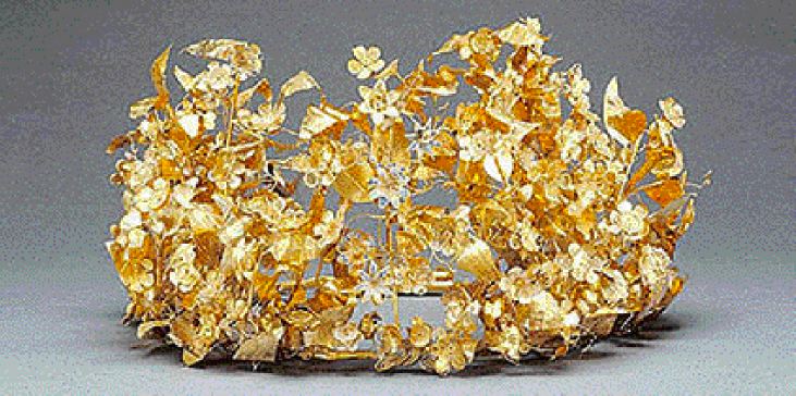 Το στεφάνι προωθήθηκε στο Μόναχο, αλλά δεν είχε την τελική εμπορική χρήση του ο Σαβόκα, ο οποίος εκείνη την περίοδο είχε γκαλερί στο κέντρο της γερμανικής πόλης. Το στεφάνι κατέληξε – στα τέλη του 1991 – σε δύο Ελληνες που ζούσαν στο Μόναχο. Ο ένας είναι ιδιοκτήτης εταιρείας εισαγωγών με το όνομα «Ηρακλής» και έδρα την πόλη Ριντ και ο άλλος εμφανιζόταν ως άεργος. Ο πατέρας του δεύτερου είχε πιτσαρία στην Κολονία. Στην παρέα των δύο ελλήνων εμπόρων του χρυσού στεφανιού βρέθηκε και ένας Σέρβος, του οποίου οι έλληνες αξιωματικοί γνωρίζουν τώρα μόνο το μικρό όνομα – «Κοβάσεβιτς», χωρίς άλλα στοιχεία. Επίσης γνωρίζουν ότι διέμενε στο ξενοδοχείο «Penta» του Μονάχου στο οποίο δεν πλήρωσε τα εξοδα διαμονής του -περίπου 15000 μάρκα- με αποτέλεσμα να προφυλακισθεί. Οι δύο Ελληνες δεν έχουν απασχολήσει ξανά τις διωκτικές αρχές της Γερμανίας για σοβαρή εγκληματική ενέργεια. Οι δύο Ελληνες και ο Σέρβος επιχείρησαν να πωλήσουν – τον Φεβρουάριο του 1992 – το στεφάνι σε έλληνα ζωγράφο, που είχε γεννηθεί το 1964, στο Μόναχο. Ο ζωγράφος, ο οποίος σήμερα ζει στο Μαρούσι και ταξιδεύει συχνά στη Γαλλία, αρνήθηκε τη συναλλαγή. Μετα από σύσταση του ζωγράφου οι αρχαιοκάπηλοι απευθύνθηκαν στον αυστριακό αρχαιοπώλη, με έδρα τη Βασιλεία της Ελβετίας, Κριστόφ Λεόν. Μέσω αυτού και του Σάιμς το χρυσό στεφάνι κατέληξε στο Μουσείο Γκετί των ΗΠΑ. Σύμφωνα με τα έγγραφα που βρίσκονται στην ΕΛΑΣ στη συγκεκριμένη συναλλαγή ενπλάκη και ο Γερμανός ιδιώτης Μαλφρεντ Ντελιτς -με τη χρήση της εταιρείας “Price Tipr GMBH”-o οποίος απεβίωσε δύο χρόνια αργότερα αργότερα.