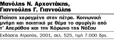 Εκτός από τις 74 φωτογραφίες που παρατίθενται, η έκδοση συμπληρώνεται από παράρτημα στο οποίο ο υπομονετικός αναγνώστης θα ανακαλύψει πλήθος στοιχείων, κρατικών εγγράφων και έμμετρων πληροφοριών για την εξόρυξη της σμύριδας στη Νάξο.