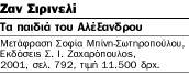 Η ύστερη αρχαιότητα ήλθε στο φως τα τελευταία χρόνια με μια σειρά έργων σύγχρονων φιλολόγων και ιστορικών, τα οποία μεταφράζονται βαθμηδόν και στα ελληνικά. Στον κύκλο αυτών των φιλολόγων ανήκει και ο 80χρονος σήμερα καθηγητής της Ελληνικής Φιλολογίας στο Πανεπιστήμιο της Σορβόννης (Paris IV) Jean Augustin Sirinelli, ο οποίος έχει διατελέσει μεταξύ άλλων στο παρελθόν πρόεδρος της Unesco. Οταν έγραψε Τα παιδιά του Αλέξανδρου, το 1993, θέλησε να μεταφέρει στο βιβλίο την εκπαιδευτική του πείρα που του υπέδειξε ότι για να καλύψει μια τόσο μακρά περίοδο έπρεπε να παρακολουθήσει όχι μόνο την ενότητα και τη συνέχεια της ελληνικής γραμματολογίας αλλά και τα διαρκή τραντάγματα της Ιστορίας. Ετσι αποφάσισε να εγκαταλείψει τη γνωστή κατηγοριοποίηση της γραμματείας σε είδη και επέλεξε τον χαρακτήρα της ιστορικής αφήγησης με χρονολογική σειρά. Μέσα στη ροή των αιώνων, σε διαφορετικούς τόπους και κοινωνίες, ο Σιρινελί ανέλαβε να αναδείξει τα σημεία όπου προέβαλλαν οι καινούργιες ιδέες και εξελίσσονταν οι ριζικές μεταλλαγές, όπως εκφράζονταν από τους θεατρικούς συγγραφείς, τους ποιητές, τους ιστορικούς, τους επιστήμονες, τους φιλοσόφους, τους θρησκευτικούς ηγέτες της κάθε εποχής. Κοινό χαρακτηριστικό όλων, ότι υπήρξαν αττικιστές και θαυμαστές του παρελθόντος της Ελλάδας γεγονός στο οποίο οφείλεται εν μέρει και η απαξίωσή τους , συγχρόνως όμως υπήρξαν πιστοί εκφραστές και αντιπροσωπευτικοί τύποι του καιρού τους σε μια μακρά περίοδο πολιτικών αλλαγών που είχαν συνέπειες στον τομέα της σκέψης και της τέχνης. Ο Σιρινελί εντοπίζει την πρωτοτυπία της προσφοράς τους.