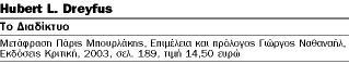 Αλλά ήδη το 2001, όταν πρωτοκυκλοφόρησε το βιβλίο στα αγγλικά, ένα τέτοιο σενάριο είχε καταστεί άνευ αντικειμένου. Εκτός από μια ασήμαντη μερίδα «εξαρτημένων», κανείς δεν κλείστηκε στο σπίτι του επειδή «σέρφαρε» όλη την ώρα, έπαψε να κάνει σεξ επειδή επινοήθηκε το «εικονικό» αντίστοιχό του, σταμάτησε να βλέπει τους φίλους του προς χάριν της ηλεκτρονικής επικοινωνίας με κάποιους αγνώστους στην άλλη άκρη της γης ή να διαβάζει βιβλία επειδή πια αρκούνταν στο περιεχόμενο των ιστοσελίδων του παγκόσμιου ιστού. Ο Ντρέιφους αυτοπαγιδευόμενος σε ένα ανύπαρκτο δίλημμα, σύρεται σε μια δυϊστική προσέγγιση, αναλαμβάνοντας να υπερασπίσει τον «πραγματικό κόσμο» απέναντι στην απειλή του «εικονικού». Μάλιστα, σύμφωνα με μια διάκριση υπερβολικά σχηματική και ανεπαρκή για φιλόσοφο, τοποθετεί απέναντι στο Διαδίκτυο το μεταμοντέρνο υποκείμενο, ένα ον ανοιχτό σε νέους ορίζοντες αλλά ασυνάρτητο και ανίκανο για ουσιαστικές κρίσεις, το οποίο αντιπαραβάλλει με το νεωτερικό υποκείμενο το οποίο, κατά τον Ντρέιφους, διαθέτει ταυτότητα σταθερή και παγιωμένη και ενδιαφέρεται για το νόημα. Προς το τέλος του βιβλίου αυτή η διχοτομία ανασκευάζεται εν μέρει, καθώς το Διαδίκτυο αναβαθμίζεται από μια περίπου άχρηστη και κυρίως δυνητικά επιβλαβή τεχνολογική καινοτομία σε μια τεχνολογία που μπορεί να λειτουργήσει συμπληρωματικά, αν και πάντοτε σε δεύτερο ρόλο, προς τη «ζωντανή επαφή». Αλλά χρειαζόταν ένα βιβλίο για να φτάσουμε σε ένα τέτοιο κοινότοπο συμπέρασμα; Πληροφορούμαστε μάλιστα ότι ένας διαπρύσιος πολέμιος του Διαδικτύου, όπως ο Ντρέιφους, χρησιμοποιεί την ιστοσελίδα του για να αποθηκεύει βιντεοσκοπημένες πανεπιστημιακές παραδόσεις και άλλο υλικό για τους φοιτητές του! Αυτή η σχετική μεταστροφή νομίζω πως οφείλεται στο ότι συγχέει συστηματικά δύο επίπεδα: αφενός την αποτίμηση των υλικών και νοητικών συνεπειών της χρήσης του Διαδικτύου από τον μέσο χρήστη και αφετέρου τις αντιλήψεις για το Internet που διατυπώνονται με τη μορφή ιδεολογικού μανιφέστου από φανατικούς υπερασπιστές του ψηφιακού κόσμου και των υπολογιστών.