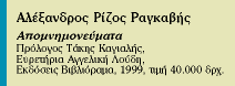 Αν αληθεύει ότι ο 20ός αιώνας με τις ιδεολογικές προκαταλήψεις του υποτίμησε μια από τις λαμπρότερες προσωπικότητες του ελληνικού 19ου αιώνα, τον Αλέξανδρο Ρίζο Ραγκαβή, τότε, ως φαίνεται, στα τελευταία του μετάνιωσε και προτού εκπνεύσει έκανε μια χειρονομία καλής θελήσεως προς τον παραγκωνισμένο λόγιο. Το 1999 ο Ραγκαβής κατέχει τα πρωτεία μεταξύ των Ελλήνων αλλά και των μεταφρασμένων συγγραφέων σε αριθμό σελίδων. Επανεκδίδονται άπαντα τα διηγήματά του, πλην του Αυθέντη του Μωρέως, σε δύο τόμους (1.140 σελίδες) και γίνεται η φωτοτυπική ανατύπωση των Απομνημονευμάτων του, σε τέσσερις τόμους (σύνολο σελίδων 2.160).