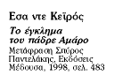 Ο Εσα ντε Κεϊρός, παρ’ ότι δεν έχει περιληφθεί ακόμη στην ευρωπαϊκή πινακοθήκη των «κλασικών», είναι ένας από τους σπουδαιότερους πορτογάλους μυθιστοριογράφους του 19ου αιώνα. Αρκεί ως εισαγωγική σύσταση η περίφημη δήλωση του ομοτέχνου και ομηλίκου του Εμίλ Ζολά, ότι ο Εσα ντε Κεϊρός ήταν «μεγαλύτερος και από τον πολύ αγαπητό μου δάσκαλο Φλομπέρ». Διόλου παράξενο που είναι σχεδόν άγνωστος εδώ. Η γνωριμία του ελληνικού αναγνωστικού κοινού με την πορτογαλική λογοτεχνία κατά ορισμένο συστηματικό τρόπο είναι υπόθεση των τελευταίων έξι – επτά χρόνων. Μάλιστα το 1990 είχε δημιουργήσει αίσθηση η αιφνίδια εμφάνιση τεσσάρων πορτογάλων συγγραφέων από το πουθενά: κανείς δεν τους ήξερε ως τότε. Και όμως μεταξύ των τεσσάρων εκείνων ήταν και ο Εσα ντε Κεϊρός, στις εκδόσεις Αλεξάνδρεια, με ένα βιβλίο που παρουσίαζε μια αρκετά σφαιρική εικόνα του συγγραφέα: μεσα από μία νουβέλα, τρία διηγήματα και μία επιστολή του ίδιου, κάτω από τον τίτλο τού ενός εκ των διηγημάτων «Ενας λυρικός ποιητής». Τώρα εκδίδεται για πρώτη φορά ένα από τα πιο γνωστά μυθιστορήματά του.