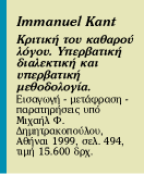 * Από τις εκδόσεις Printa κυκλοφόρησε πρόσφατα και το έργο του Ιμμάνουελ Καντ «Κριτική της κριτικής ικανότητας» σε μετάφραση – εισαγωγή – σχόλια Χάρη Τασάκου (σελ. 320, τιμή 6.000 δρχ.).