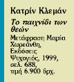 Γεννημένη το 1939 η Κατρίν Κλεμάν, γνωστή στο ευρύτερο κοινό από το βιβλίο της Η όπερα ή η ήττα των γυναικών, σπούδασε φιλοσοφία και μαθήτευσε κοντά στον Λεβί Στρος και στον Ζακ Λακάν. Το 1987 παραιτήθηκε από την επιτελική θέση της για τη διάδοση του γαλλικού πολιτισμού και ακολούθησε τον πρέσβη σύζυγό της στις Ινδίες, στην Αυστρία και στη Σενεγάλη, όπου ζει σήμερα. Η παρούσα συνέντευξη έγινε δι’ αλληλογραφίας.