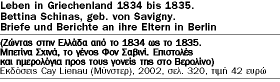 Η όμορφη Μπετίνα εγκατέλειψε το 1834 το Βερολίνο για να εγκατασταθεί στην Ελλάδα με τον άνδρα που είχε αγαπήσει. «Κρατήστε με στη μνήμη σας σαν Αθηναία» έγραφε τότε στους δικούς της. Δεν πέρασε ούτε ένας χρόνος από τότε και αυτή η Αθηναία από την Πρωσία άφηνε την τελευταία της πνοή στην ελληνική πρωτεύουσα, θύμα τρομερής επιδημίας. Σήμερα κανένας δεν ξέρει πού ακριβώς είναι θαμμένη στην Αθήνα η Μπετίνα, κι ας υπήρξε κόρη του μεγάλου γερμανού νομομαθούς και ιδρυτή της «ιστορικής σχολής» στις νομικές σπουδές Φρίντριχ Καρλ φον Σαβινί και σύζυγος του σοφολογιότατου Κωνσταντίνου Σχινά, υπουργού επί πρώτης αντιβασιλείας του Οθωνα και αργότερα πρώτου πρυτάνεως του Πανεπιστημίου Αθηνών. Οι επιζώντες απόγονοι των Φον Σαβινί είναι σήμερα μαλωμένοι και αδιάφοροι· ακόμη και το πορτρέτο της Μπετίνας που δημοσιεύεται παραπλεύρως έχει πουληθεί σε έναν ιδιώτη στο Μόναχο και ένα μέρος των καταλοίπων της οικογενείας βρίσκεται στη Βιβλιοθήκη του Πανεπιστημίου του Μύνστερ.