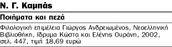 Ο Νίκος Καμπάς δεν είναι ασφαλώς Κωστής Παλαμάς ή Γεώργιος Δροσίνης, ποιητές με τους οποίους συνδέθηκε στενά. Ωστόσο η συμβολή του στον νεότερο λυρισμό μας υπήρξε τεράστια και αναγνωρίζεται πολύ σύντομα στους αθηναϊκούς φιλολογικούς κύκλους. Οταν ο Καμπάς τυπώνει το 1880, σε ηλικία 23 χρόνων, τη συλλογή του, τους Στίχους, ο 21χρονος Παλαμάς δεν έχει κάνει την πρώτη εμφάνισή του με βιβλίο. Ο βαθύς σεβασμός του Παλαμά προς τον Καμπά εκδηλώνεται σε κάθε περίπτωση. «Ο Νίκος είναι από τους πατέρες της ποιήσεως εκείνης, ο σπουδαιότερος και ο επισημότερος. […] Η ιστορία της νέας μας λογοτεχνίας, όταν μια μέρα γραφτή ακέρια, του χρωστά σελίδες πλούσια παραστατικές» γράφει όταν ο Καμπάς εγκαταλείπει τον μάταιο αυτόν κόσμο στην Αλεξάνδρεια, αναγνωρισμένος αποκλειστικά ως δικαστής και ως δικαστής τιμημένος απ’ όλους. Από την Αλεξάνδρεια, από εκεί όπου κορυφώθηκε η νομική σταδιοδρομία του Καμπά με την εκλογή του ως προέδρου των μεικτών δικαστηρίων της πόλης, έγραψε άλλωστε κάποτε με χαρακτηριστικό σπαραγμό στον Παλαμά: «Μην ελπίσεις παρ’ εμού ούτε στίχους ούτε άλλο τι. Μόνον διά της λύπης είμαι εισέτι ποιητής. Ολοι οι άλλοι παράγοντες εξέλιπον». «Ο Μυτιληνιός λόγιος προτίμησε τελικά τη δικηγορία από την ποίηση» παρατηρεί ο Γιώργος Ανδρειωμένος, ο φιλολογικός επιμελητής του παρόντος τόμου, «παρ’ ότι κατά βάθος πρέπει να είχε συναίσθηση του τι είχε επιτελέσει για τη λογοτεχνία του καιρού του».