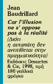 Γνωρίσαμε τον γάλλο κοινωνιολόγο Ζαν Μποντριγιάρ από τα βιβλία του «Le Systeme des objets» (1968) και «L’ Echange symbolique et la mort» (1976) ως το πιο πρόσφατο «La guerre du Golf n’a pas eu lieu» (1991), ως ερευνητή των γλωσσολογικών σημαινόντων και σημαινομένων συνδέοντας τις θεωρίες του Σοσίρ και του Μαρξ. Και ακόμη, ως σημείο αναφοράς, για τις φιλοσοφικές του θέσεις πάνω στη σχέση της παραγωγής υλικών αντικειμένων και των επιθυμιών και φαντασμάτων των καταναλωτών.
