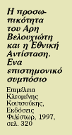 Τις τελευταίες ημέρες του περασμένου χρόνου κυκλοφόρησε από τις εκδόσεις Φιλίστωρ ο συλλογικός τόμος των Πρακτικών ενός διήμερου συμποσίου που είχε πραγματοποιηθεί το 1995, πενήντα χρόνια μετά τον θάνατο του Αρη Βελουχιώτη· προστέθηκε έτσι ένα ακόμη βιβλίο σε όσα είχαν ήδη εκδοθεί, στη διάρκεια του 1997, με θέμα τη μελέτη της ζωής και της δράσης του, το οποίο προσπαθεί να απαντήσει στο φιλόδοξο ερώτημα «ποιος ήταν ο Αρης», ερευνώντας την ίδια τη σύνθετη προσωπικότητά του και τον εξέχοντα ρόλο του στις εξελίξεις της Κατοχής. Στο πρώτο μέρος του τόμου επιχειρείτ7αι μια διεπιστημονική προσέγγιση μέσα από τις οπτικές γωνίες της ιστορίας, της πολιτικής επιστήμης και της κοινωνιολογίας και στο δεύτερο περιέχονται οι μαρτυρίες γνωστών αντιστασιακών, συναγωνιστών του Αρη.