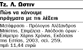 Στις υπόλοιπες διαλέξεις του οδηγείται στη θέση ότι τελικά, υπό μια ευρεία έννοια, πάντα κάνουμε πράγματα με τις λέξεις και εισάγει την τριχοτόμηση μεταξύ λεκτικών πράξεων (πράξεις τού να λες κάτι), ενδολεκτικών (πράξεις που επιτελούνται λέγοντας κάτι) και περιλεκτικών (πράξεις που επιτελούνται με το να λες κάτι). H αρχική διάκριση επιτελεστικών – διαπιστωτικών εγκαταλείπεται αφού πρώτα παρήγαγε τα πορίσματα που την αναίρεσαν. Ακριβώς όμως η υπέρβασή της αποδεικνύεται γόνιμη, διότι υποδεικνύει μια μεγαλύτερη ανατροπή. Ο Ωστιν προτείνει πια μια ενιαία διαδικασία αποτίμησης των εκφορών. Μια εκφορά δεν μπορεί να απομονωθεί από τα συμφραζόμενα και το ευρύτερο πλαίσιό της. Το «ολικό ομιλιακό ενέργημα εντός της ολικής ομιλιακής κατάστασης» είναι το πεδίο γλωσσικής ανάλυσης που έχει ενδιαφέρον από φιλοσοφική άποψη. Ενα παράδειγμα του Ωστιν είναι η εκφορά «η Γαλλία είναι εξαγωνική». Για έναν στρατηγό είναι πιθανόν κατάλληλη, για έναν γεωγράφο όχι. Είναι μια «χοντρική» περιγραφή. Επομένως, δεν μπορεί να αποτιμηθεί μόνο σύμφωνα με τη σημασία της αλλά και την ισχύ της (με αναφορά στη χρήση, στις εφαρμογές της). Το έργο του Ωστιν έγινε κλασικό και αποτέλεσε ένα ανοικτό ερευνητικό πρόγραμμα που επηρέασε την αναλυτική φιλοσοφία της γλώσσας. H μετάφραση, που ομολογουμένως ήταν πολύ απαιτητική εργασία, είναι αξιόπιστη. Ισως μπορούν να διατυπωθούν επιφυλάξεις για επιλογές στην απόδοση κάποιων όρων. Οι τελευταίες είναι πάντως ξεκάθαρες και αιτιολογημένες.