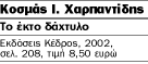 Την αίσθηση του υπερφυσικού την είχαμε πράγματι διαβάζοντας, όμως, το προηγούμενο βιβλίο του Κ. Ι. Χαρπαντίδη, καθώς μια σχεδόν υπερκόσμια λάμψη διαχεόταν από τις Εξοχές των νεκρών. Εκείνα τα διηγήματα εμφανίζονταν ως πεζά, μορφικά ρευστά, κάποτε και σαν μονόλογοι, που χώνευαν εντός τους παλαιές ιστορίες και μυθικές διηγήσεις, με τους νεκρούς να παρηγορούν και να προστατεύουν τους προσφιλείς τους. Και όλα αυτά να συμβαίνουν σε μια ειδυλλιακή φύση, δεμένη με τον γενέθλιο τόπο του αφηγητή. Την τρυφερότητα και τη νοσταλγία που απέπνεαν τα παλαιότερα διηγήματα, έρχονται να διαλύσουν τα πρόσφατα, που απώλεσαν μεν τον υπερβατικό χαρακτήρα, αλλά απέκτησαν στερεότερη μορφή, με ήρωες όχι μεν εξαδάκτυλους αλλά ζωντανούς και οικείους. Η τριτοπρόσωπη αφήγηση, χάρη και στην εσωτερική θεώρηση που, ως επί το πλείστον, υιοθετεί, δείχνει την ψυχολογία τους ερμηνεύοντας πράξεις και μεταλλαγές.