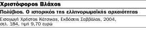 Ο Πολύβιος έβλεπε πολύ μπροστά. Σημείωνε τα γεγονότα, κατέγραφε τις πολεμικές τακτικές, αλλά γι’ αυτόν η γενεσιουργός αιτία της καθολικής επιτυχίας της Ρώμης ήταν οι θεσμοί της και η πολιτειακή και πολιτική της οργάνωση. Αυτήν ήθελε να περιγράψει. Και όμως, αυτός ο μοναδικός ιστορικός της περιόδου, αυτόπτης μάρτυρας στα περισσότερα γεγονότα, δέχθηκε πολλές κριτικές μέχρι σήμερα: «Ψευδοθουκυδίδη» τον είπαν, «κακό ιστορικό» τον χαρακτήρισαν, «συνταξιούχο στρατιωτικό» τον αποκάλεσαν. Αισίως, ο συγγραφέας κ. Χριστόφορος Βλάχος, ιστορικός των ελληνιστικών χρόνων, προτάσσει τα χαρακτηριστικά της εποχής του Πολύβιου, τα οποία ερμηνεύουν σε μεγάλο βαθμό τη στάση του και τις επιλογές του. Αν τον βγάλει κανείς από την εποχή του, θα λοξοδρομήσει εντελώς. Χώρια που αν δεν υπήρχε ο Πολύβιος δεν θα είχαμε ιδέα για αυτή την τόσο σκοτεινή περίοδο της ελληνορωμαϊκής όσμωσης. Κανείς δεν ισχυρίζεται βέβαια – ούτε καν το παρόν βιβλίο – ότι ο ιστορικός στερείται αδυναμιών.