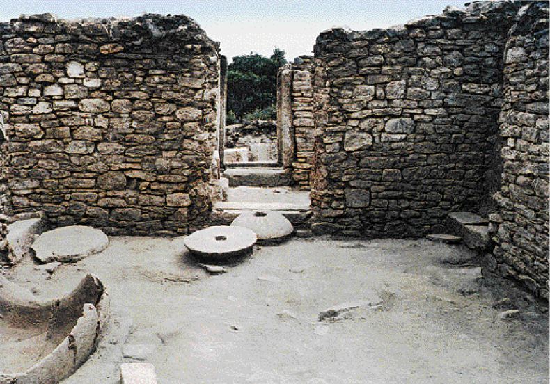 Το ενδιαφέρον όμως δεν περιορίζεται μόνο στο οικοδόμημα αυτό. Στον νότιο τομέα της πόλης, που εκτείνεται από την παραλία ως τα ριζά του λόφου της ακρόπολης, έχουν ανασκαφεί δημόσια αλλά και ιδιωτικά κτίσματα. Επίσης έχουν αποκαλυφθεί τμήματα πλακόστρωτων δρόμων που οδηγούν από την περιοχή του λιμανιού ως την ακρόπολη. Ενας από αυτούς, πλάτους περίπου 5 μέτρων, διασχίζει τον νότιο τομέα, ενώ άλλος, μικρότερος, ελίσσεται μέσα στον οικισμό. Στην παρειά του μεγάλου δρόμου και με ανοίγματα σε αυτόν έχουν ανασκαφεί τέσσερα οικήματα (ιδιωτικά σπίτια και δημόσια οικοδομήματα). H χρονολόγησή τους εκτείνεται από το τελευταίο τέταρτο του 6ου αιώνα π.X. μέχρι το έτος 357 π.X. Σ’ αυτά παρατηρούνται οικοδομικές φάσεις, που συνδέονται με μεγάλα ιστορικά γεγονότα, όπως το πέρασμα της στρατιάς του Ξέρξη, τα γεγονότα του Πελοποννησιακού πολέμου και η σαρωτική εκστρατεία του Φιλίππου B’. Τέλος, στην περιοχή του λιμανιού η αρχαιολογική σκαπάνη αποκάλυψε σπίτια του 7ου αιώνα π.X., εποχή της πρώτης εγκατάστασης των ελλήνων αποίκων στον χώρο.