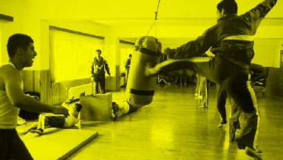 Στη συνέχεια περνούμε στο γυμναστήριο, μέσα στο οποίο η ατμόσφαιρα είναι θολή από τις αναθυμιάσεις της τεστοστερόνης. Στην αρχή το όλο θέαμα μοιάζει με ένα φυσιολογικό γυμναστήριο αλλά μια δεύτερη ματιά μάς αποκαλύπτει πως πρόκειται για κάτι παραπάνω. Ενας μαθητής ρίχνει γροθιές σε έναν σάκο πυγμαχίας, δύο άλλοι επιδίδονται σε έναν φιλικό αγώνα μποξ, λίγο πιο πέρα κάποιος αρπάζει κάποιον και του περνάει χειροπέδες, ένας άλλος χτυπάει με κλομπ έναν συμμαθητή του που προστατεύεται με ειδικές ασπίδες, δίπλα τους δυο άλλοι μαθαίνουν να προτείνουν τα όπλα τους και να πυροβολούν, ενώ ταυτόχρονα κάνουν εντυπωσιακές φιγούρες στο πάτωμα. Ολα αυτά φέρνουν στον νου αστυνομικές ταινίες και σκηνές από ειδήσεις. Εδώ μέσα καταλαβαίνεις την ιδιαιτερότητα αυτής της σχολής. Γιατί όπως και να το κάνουμε έχει μιαν ιδιαιτερότητα το να διδάσκεις κάποιον να χτυπάει με κλομπ ή να πυροβολεί σωστά. Αν πάλι δεν τον διδάξεις να το κάνει σωστά, αυτός ο άνθρωπος δεν θα είναι ικανός να κάνει καλά τη δουλειά του.