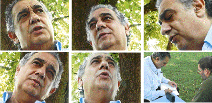 «Πώς να αρχίσω;». «Να του πω ότι δεν μου αρέσουν καθόλου αυτές οι κοινές εμφανίσεις των τριών τενόρων;». «Μήπως θυμώσει;». «Ηθελε αλήθεια να γίνει ταυρομάχος;». Εφθασε στην ώρα του. Φορούσε ένα σιέλ πουκάμισο αρκετά ανοιχτό, όπως τα φορούσε και ο Κωνσταντάρας στις ελληνικές ταινίες! Θεόρατος, γελαστός και κάθε λίγο να με ρωτάει: «Πολύ σοβαρά πράγματα λέμε… Μήπως πρέπει να πούμε κάτι που να ενδιαφέρει τον κόσμο;». Εγώ το βιολί μου… Πέρασε η ώρα και το αποτέλεσμα ήταν καλό! Γυρίζοντας στο αεροπλάνο σκεφτόμουν συνεχώς τον τρόπο με τον οποίο έπινε, με καλαμάκι, τον καφέ του. «Εναν φρέντο εγώ… Εσείς;». Είχε παραγγείλει για όλους, όπως κάνουν οι φίλοι στα καφέ! Τόσο οικείος! Γελαστός. Σαν να μην έχει περάσει ο χρόνος από πάνω του. Σαν να ξεκινάει τώρα το ταξίδι που έχει έχει πρώτό του σταθμό το Ηρώδειο! Την Τετάρτη θα είναι εδώ, να τραγουδήσει μπροστά στο αθηναϊκό κοινό πρώτη φορά. Το ραντεβού αυτό με τους Ελληνες το οφείλει στην Ελένη Μουσταΐρα της Αττικής Πολιτιστικής Εταιρείας και στην κυρία Μπελεζίνη του Φεστιβάλ Αθηνών. Αυτά τα δύο πρόσωπα επέμειναν και το ακατόρθωτο έγινε κατορθωτό με τη χορηγία της Eurobank.