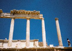 Μεσημέριαζε όταν αφήσαμε το Αϊβαλί. Ο δρόμος για τη Σμύρνη περνά μέσα από ατέλειωτους ελαιώνες. Χωριά δίπλα στη θάλασσα και οι φρικτοί συνοικισμοί – στρατόπεδα για καλοκαιρινές διακοπές. Μετά τη διασταύρωση για το Δίκελι (Dikili), ακόμα μια κωμόπολη με ελληνικό πληθυσμό και σχολεία από το τέλος του περασμένου αιώνα, ο δρόμος στρέφεται προς το εσωτερικό, μπαίνοντας στη πλατιά και εύφορη πεδιάδα του Κάικου. Ο γυμνός κωνικός βράχος της Ακρόπολης ξεχωρίζει έντονα και στην κορυφή του ασπρίζει το ιερό του Τραϊανού και το θέατρο. Διασχίζοντας το κέντρο της πόλης περνούμε μπροστά από το θεόρατο Σεράπιο, μια από τις επτά εκκλησίες της Αποκάλυψης, και συνεχίζουμε τον δρόμο προς την Ακρόπολη. Απο ψηλά το θέαμα είναι εξαιρετικό. Μπροστά απλώνεται η πόλη της Περγάμου με τον κάμπο να φθάνει ως τη θάλασσα. Αριστερά, τα χαμηλά βουνά Kilic και πίσω, ανατολικά, ο δρόμος για τα Σόμα και στη συνέχεια για το Balikesir, στην καρδιά της Μυσίας. Στον κάμπο, ο Κάικος και οι παραπόταμοι του, ενώ προς τα βορινά ορθώνονται τα καταπράσινα βουνά του Kozak. Ανηφορίζω τον αρχαίο πλακοστρωμένο δρόμο για την κορυφή της Ακρόπολης. Κτισμένη σε πολλαπλά τεχνητά επίπεδα, η Πέργαμος αποτελεί την έκφραση του πλούτου και της αισθητικής που χαρακτήριζε τους βασιλιάδες της, τον Ατταλο, τον Ευμένη και τους διαδόχους τους. Το θυμάμαι έντονα το κατακόρυφο θέατρό της. Καθώς κάθεσαι στα τελευταία άνω διαζώματα, η πόλη βρίσκεται ακριβώς κάτω από τα πόδια σου. Οι γερμανοί τουρίστες, ακίνητοι και άφωνοι, άκουγαν τις γνωστές κοινοτοπίες των ξεναγών. Κατηφορίζω στην αγορά. Αντικάδικα χωρίς τίποτε το ιδιαίτερο και χαλιά που οι τιμές τους προϋποθέτουν ως πελάτες αδαείς αμερικανούς τουρίστες. Το πρωί ξεκινήσαμε νωρίς για το Ασκληπιείο, στην άκρη της πόλης. Μέσα στην πρωινή ομίχλη, με τον απόηχο από τα παραγγέλματα γυμναστικής στο διπλανό στρατόπεδο, διασχίζουμε την «ιερά οδό» και μπαίνουμε στο πρόπυλο. Αριστερά, η βάση του κυκλικού ναού του Ασκληπιού που κατασκευάστηκε τον 2ο μ.Χ. αιώνα με χορηγία του Κούσπιου Ρουφίνου. Απέναντι, δεξιά, το θέατρο. Στη μέση του χώρου, δίπλα στην ιερή πηγή η υπόγεια στοά που διασχίζει όλον τον χώρο και καταλήγει σε ένα περίεργο στρογγυλό διώροφο κτίριο, στη νότια γωνία του χώρου. Υποβλητική η διαδρομή μέσα στη στοά σε απόλυτη ησυχία. Πού και πού στην οροφή υπάρχουν ανοίγματα για να μπαίνει το φως.