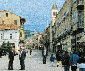 Σε μια πολυκατοικία μια μεγάλη φωτεινή επιγραφή εξηγεί γιατί μπαινοβγαίνει τόση νεολαία: «Star FM, 104.2». Τραβιόμαστε στην άλλη άκρη, εκεί όπου το Φαρδύ βγαίνει στην πλατεία με το τζαμί του Ισάκ μπέη (1508) και τον πύργο του ρολογιού. Ενα παλιό «νεοκλασικό» είναι τώρα εστιατόριο πολυτελείας με πίτσες και γαλλική κουζίνα. Απέναντι, το παλιό μπεζεστένι δεν φοβάται πια τον λήσταρχο Πάνο που, όπως γράφει ο Εβλιγιά Τσελεμπί, το καταλήστευε επανειλημμένα το 1600 και έχει τις πόρτες του ανοιχτές. Στο ομώνυμο εστιατόριο πολύ καλό φαγητό, ιδίως η πηκτή από χοιρινό, αξιοσημείωτη ποικιλία μεζέδων και όπως πάντα πολύ λογικές τιμές. Από την ανοιχτή πόρτα του βλέπω τα μικρά μαγαζιά στο εσωτερικό της αγοράς. Ο παππούς της Κλέας, ο Κρουσοβίτης κυρ Ματθαίος, είχε εδώ ένα υφασματάδικο. Το 1906 τον σκότωσαν μπροστά στο μαγαζί του.