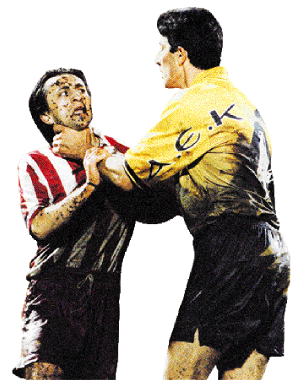 Ο οπαδός του Ολυμπιακού δεν ξεχνά πώς ανταπέδωσε η ΑΕΚ την «εξυπηρέτηση» στο ντέρμπι της τελευταίας αγωνιστικής του πρωταθλήματος ’92-’93. Ο Ολυμπιακός τότε δεν προέβαλε ιδιαίτερη αντίσταση και η «Ενωση» με τη νίκη της με 3-1 πήρε πάνω στο νήμα τον τίτλο από τον ­ κοινό «εχθρό» ­ Παναθηναϊκό. Λίγους μήνες μετά η ΑΕΚ τα έδωσε όλα για να αποκλείσει τον Ολυμπιακό από τον μοναδικό τίτλο που θα μπορούσε τότε να διεκδικήσει: το Κύπελλο.
