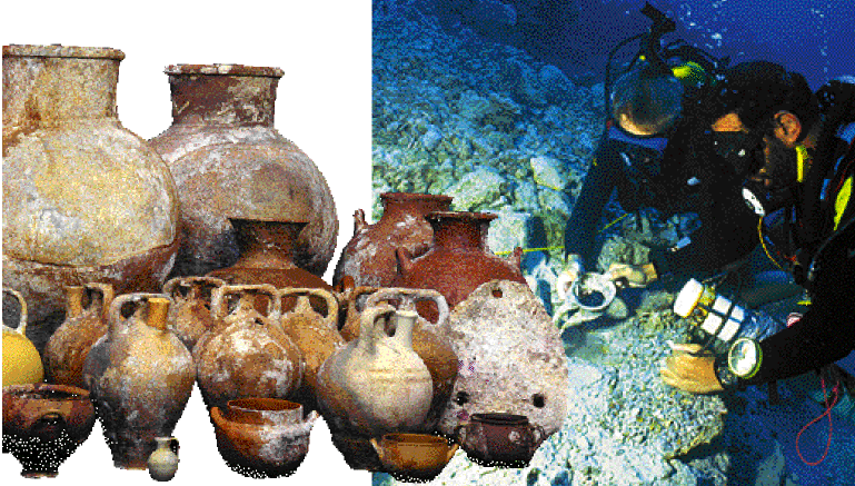 Ναυάγια, δηλαδή «κλειστά σύνολα» προσδιορισμένης χρονολογίας, αρχαίες κατασκευές ή άλλου είδους οικιστικά σύνολα είναι οι υποβρύχιοι αρχαιολογικοί χώροι της Ελλάδας αλλά και των γειτονικών, μεσογειακών χωρών με παράλληλες ιστορικές διαδρομές. Ολα αυτά προστατεύονται από τις διατάξεις του ισχύοντος Αρχαιολογικού Νόμου 3028, ο οποίος μάλιστα προβλέπει και την προστασία πολιτιστικών αγαθών, που εντοπίζονται εκτός της αιγιαλίτιδος ζώνης και των χωρικών υδάτων σε θαλάσσιες ζώνες όπου η Ελλάδα μπορεί να ασκήσει τη δικαιοδοσία της σύμφωνα με τους κανόνες του διεθνούς δικαίου.