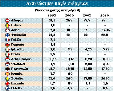 ΠΡΩΤΗΣ προτεραιότητας εθνικό ενεργειακό στόχο αποτελεί για την Ελλάδα ο διπλασιασμός της χρήσης των Ανανεώσιμων Πηγών Ενέργειας (ΑΠΕ) ως το 2010. Η «αυτοδέσμευση» της ελληνικής πλευράς για τη συνεχώς αυξανόμενη χρήση των ΑΠΕ διατυπώνεται σε κάθε περίπτωση όταν συζητούνται στις Βρυξέλλες ενεργειακά θέματα.