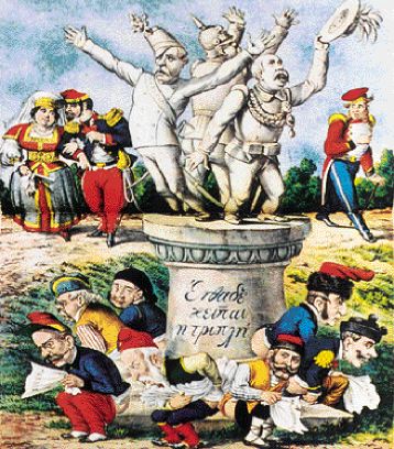 Οι αλλαγές άλλωστε που συντελούνται, την ίδια περίπου εποχή, στην ευρωπαϊκή διπλωματία απέναντι στα Βαλκάνια, λόγω κυρίως του ενδιαφέροντος που δείχνουν η Γερμανία και η Αυστρία για την περιοχή, επέτειναν τη σύγχυση και την ασάφεια που επικρατούσε στην Ελλάδα για την ενδεδειγμένη εξωτερική πολιτική που θα οδηγούσε στην εθνική ολοκλήρωση. Ετσι ο φιλικός ή εχθρικός ρόλος του Τούρκου και του Σλάβου, της φιλελληνικής ή ανθελληνικής ευρωπαϊκής διπλωματίας, της εχθρής ή φίλης Γερμανίας, Αγγλίας, Ρωσίας κλπ. εναλλασσόταν με μεγάλη άνεση στην ελληνική γελοιογραφία και σάτιρα της τελευταίας εικοσαετίας του 19ου αιώνα.