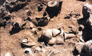 Επίσης, στο Αρχαιολογικό Δελτίο 19, 1964, Β2, Χρονικά, σελ. 414, σε σχέση με την ανασκαφική έρευνα στο οικοδομικό τετράγωνο 4 του ίδιου τομέα, αναφέρει: “Αλλ’ ας επανέλθωμεν εις την αποκαλυφθείσαν ήδη οικίαν. Το στρώμα καταστροφής, του οποίου το βάθος εκυμαίνετο μεταξύ 0,60 έως 1,20 μ., ήτο ομοιογενές και αδιατάρακτον. Είναι προφανές ότι βιαία υπήρξε η αιτία της καταρρεύσεως των τοίχων, των στεγών κλπ. (Πίν. 466)”.