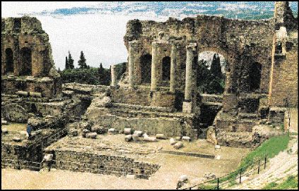 Στη Νάξο, την παλιότερη ελληνική αποικία της Σικελίας (ιδρύθηκε γύρω στα 734-733 π.Χ.), τα τείχη, κτισμένα με ηφαιστειακούς λίθους της Αίτνας, αποτελούν το καλύτερα ως σήμερα σωζόμενο μνημείο της, ενώ το γειτονικό Ταυρομένιο, η γνωστή μας Taormina, σκαρφαλωμένη ψηλά σε απότομους βράχους, μαγεύει τον επισκέπτη της με την απαράμιλλη θέα που προσφέρει. Από το θέατρό της, που συμβαίνει να σώζει και μεγάλο τμήμα της σκηνής του, και με φόντο την Αίτνα, αντικρίζει κανείς τοπία σπάνιας ομορφιάς, ενώ ανεπανάληπτη είναι και η θέα προς τις βραχώδεις όσο και καταπράσινες ακτές.