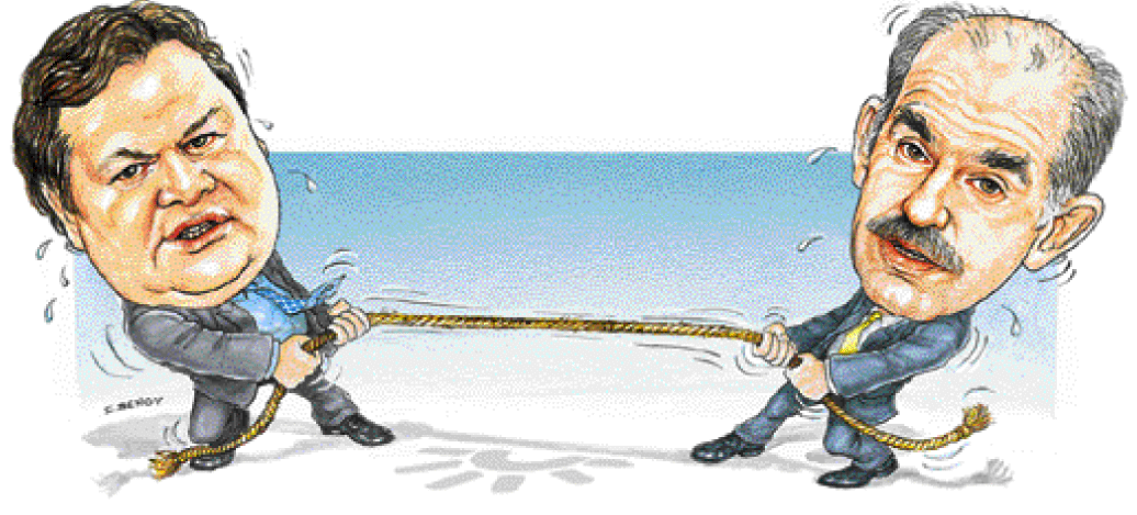 Αν οι σχέσεις του κ. Βενιζέλου με τον Ανδρέα ήταν ιδανικές δεν φαίνεται να συμβαίνει το ίδιο με τον πρόεδρο του ΠαΣοΚ κ. Γ. Παπανδρέου. Ο κ. Βενιζέλος, δικαίως ή αδίκως, θεωρεί ότι ο Γιώργος τον κέρδισε στο πρωτάθλημα για την κούρσα της ηγεσίας χωρίς αγώνα, καθώς οι εξελίξεις ήταν τέτοιες που δεν επέτρεψαν μια συνηθισμένη διαδικασία αλλαγής ηγεσίας στο κόμμα. Για όλα αυτά βεβαίως ο και καθηγητής Συνταγματικού Δικαίου μέμφεται περισσότερο τον πρώην πρωθυπουργό κ. K. Σημίτη – για τον τρόπο που αποχώρησε από την ηγεσία – και λιγότερο τον πρόεδρο του ΠαΣοΚ. H ισορροπία ανάμεσα στον κ. Βενιζέλο και στον κ. Παπανδρέου μοιάζει μάλλον με ένα εκκρεμές που βρίσκεται σε διαρκή παλινδρομική κίνηση. Οι συγκρούσεις στο παρασκήνιο και σπανιότερα στο προσκήνιο δεν προσλαμβάνουν ποτέ τον χαρακτήρα κρίσης και συνήθως όταν ο ένας κάνει επίθεση ο άλλος αναδιπλώνεται και αυτό συμβαίνει πάντα με πολιτικούς όρους που δεν ξεπερνούν ποτέ τα όρια της ευπρέπειας.