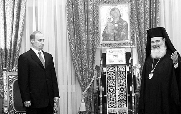 Οταν ο κ. Χριστόδουλος ως Προκαθήμενος της Αυτοκεφάλου Εκκλησίας της Ελλάδος πραγματοποιεί τις, χαρακτηριζόμενες εκκλησιαστικά, ειρηνικές του επισκέψεις, η ελληνική πολιτεία στηρίζει τις προσπάθειές του. Δεν είναι λίγες οι φορές – όπως όταν επισκέφθηκε τη Ρωσία, τη Συρία και τον Λίβανο – που η ελληνική κυβέρνηση διέθεσε ειδικό αεροσκάφος για τις ανάγκες το ταξιδιών του. Αυτές οι «εξυπηρετήσεις» δεν είναι τυχαίες. Γίνονται διότι ο κ. Χριστόδουλος όταν το 1999 συναντήθηκε με τον Χαφέζ Αλ Ασαντ στην Δαμασκό, παρουσία του έλληνα πρέσβη, ως πνευματικός ηγέτης τόνισε και τα εθνικά θέματα που απασχολούν το ποίμνιό του. Το ίδιο έγινε όταν επισκέφθηκε το Κρεμλίνο και συναντήθηκε με τον ρώσο πρόεδρο Βλαντίμιρ Πούτιν και μίλησε για τα προβλήματα που αντιμετωπίζει η Ελλάδα με την Τουρκία. Και ο κ. Πούτιν όταν επισκέφθηκε την Ελλάδα συναντήθηκε με τον Πρόεδρο της Δημοκρατίας, τον Πρωθυπουργό και είχε συνομιλίες με τον υπουργό Εξωτερικών, αλλά η συνάντησή του με τον Αρχιεπίσκοπο ξεπέρασε τη μιάμιση ώρα και, για τους δημοσιογράφους που παρακολούθησαν τις κινήσεις του, ήταν ίσως οι μοναδικές στιγμές που ο «αγέλαστος» ρώσος πρόεδρος έδειχνε εύχαρις και χαμογελούσε.