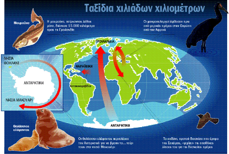 Και αν ο Μπλομπ διένυσε 8.000 χιλιόμετρα από Βορράν προς Νότο για να συναντήσει την αδελφή ψυχή του, μουρούνες (Dissostichtus eleginoides) κάλυψαν από… σφάλμα τη διπλάσια απόσταση προς την αντίθετη κατεύθυνση! Τα ψάρια αυτά, με μήκος περίπου δύο μέτρα και βάρος 70 κιλά, τα οποία εντοπίστηκαν στη θαλάσσια περιοχή ανοιχτά της Γροιλανδίας, έκαναν μάλιστα τέτοιο ρεκόρ ώστε να παρουσιασθούν σε πρόσφατο τεύχος της έγκριτης επιθεώρησης «Nature». Σύμφωνα με τους ειδικούς, πρόκειται για ένα μεγάλο κατόρθωμα. Η μουρούνα είναι ένα ψάρι που ζει συνήθως στα νερά των υπο-ανταρκτικών περιοχών. Ακολουθώντας τα ψυχρά ρεύματα μπορεί να ταξιδεύσει προς τον Βορρά και ως σήμερα τα όρια που οι επιστήμονες γνώριζαν ότι μπορεί να αγγίξει ήταν σε αντιστοιχία με την Ουρουγουάη για τον Ατλαντικό και το Εκουαδόρ για τον Ειρηνικό.